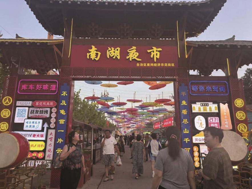 图为库车市南湖夜市入口。