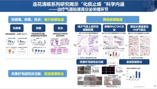 基础与临床研究均证实了连花清咳片的良好疗效。基础研究发现,其多种药物成分具有抗病毒、抑菌、抑制气道炎症反应、改善纤毛结构及功能的作用,从而能够减少痰液生成、降低痰液黏度、促进痰液排出,解决痰液阻滞气管影响通气换气的问题。临床研究表明,连花清咳片对于多种呼吸系统疾病咳嗽咳痰症状具有明显改善作用,可以有效解决呼吸系统感染性疾病中痰液阻滞气管,影响肺之通气换气功能的临床难题。