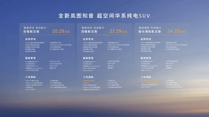 易车讯在2025成都车展开幕前夕,岚图官方宣布全新知音迎来正式上市,新车共推出3款车型,售价区间20.29-24.29万元。新车将搭载华为最新一代乾崑智驾ADS4与鸿蒙座舱HarmonySpace5。官方表示,新车即日起开启交付。